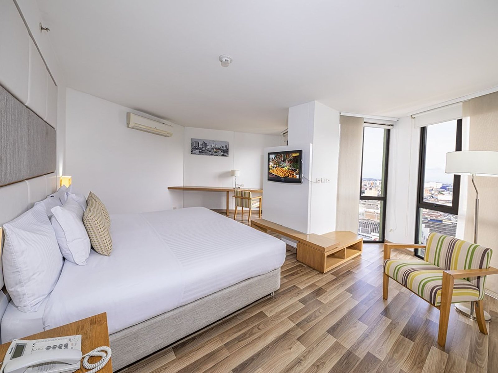 Las 58 habitaciones del Hotel Cosmos Cali han sido diseñadas para ofrecer a los viajeros de negocios y de placer un retiro relajante y acogedor en una de las zonas más tranquilas y exclusivas de Cali. Todas las habitaciones ofrecen un estilo elegante, comodidades modernas y abundante luz natural a través de ventanas de piso a techo. Después de un día de viaje, reuniones o explorar los lugares de interés de Cali, estas son las habitaciones a las que sueña regresar.